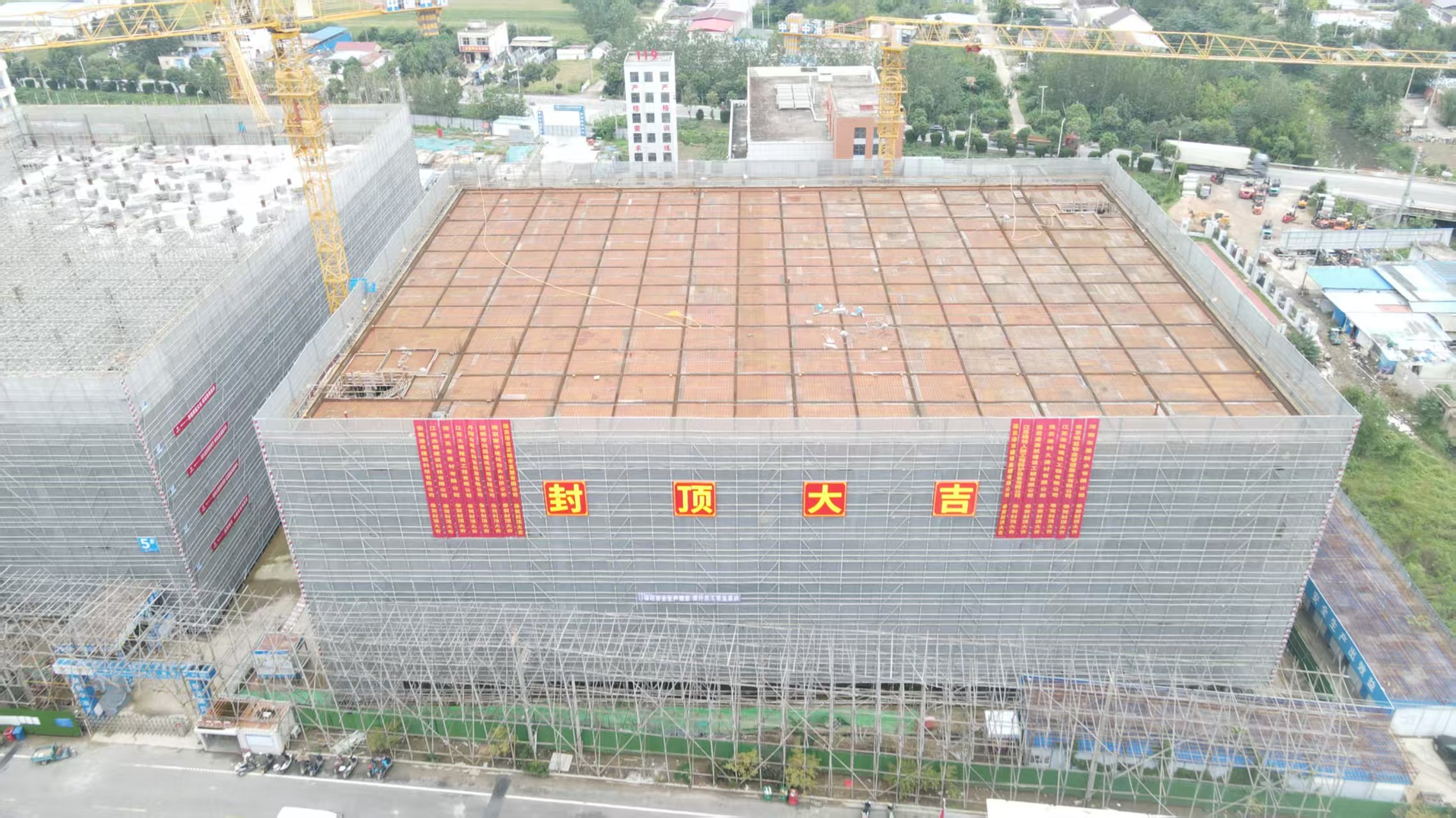 近日,伴隨著最后一方混凝土的澆筑完成,江蘇公司灌云光谷項(xiàng)目首棟4#廠房主體結(jié)構(gòu)順利封頂。